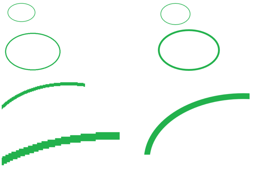 Слика: Пример увеличавања растерске (лево) и векторске (десно) слике