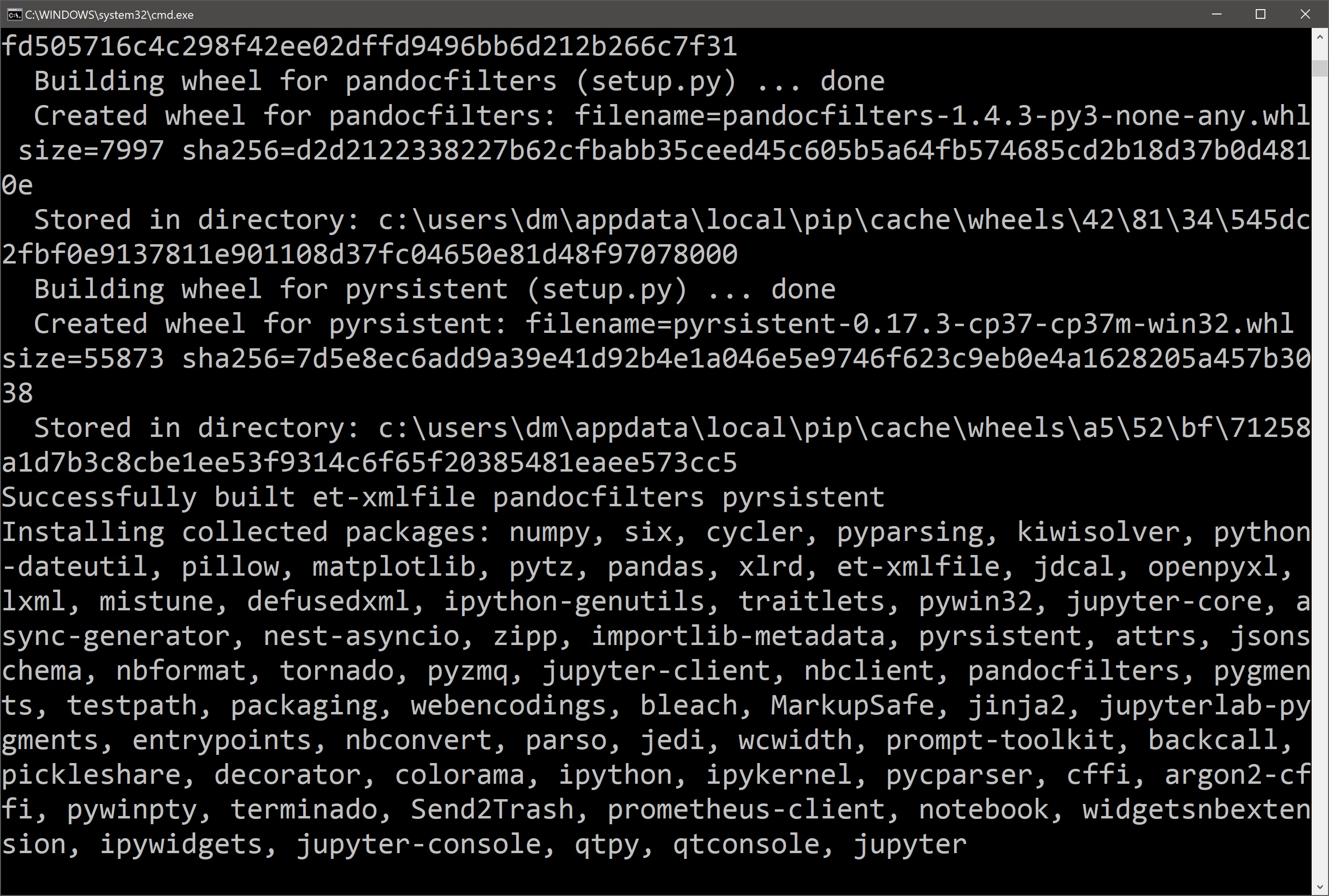 Ова команда ће радити неко време и при томе ће инсталирати све неопходне библиотеке за рад са Џупитер окружењем: