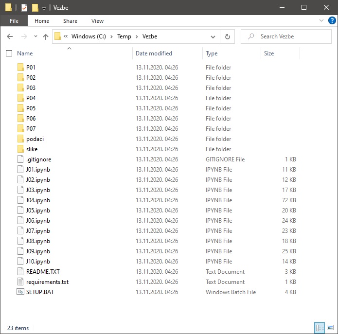 Први је да преузмеш пакет фајлова за вежбу и користиш Џупитер окружење на свом рачунару,