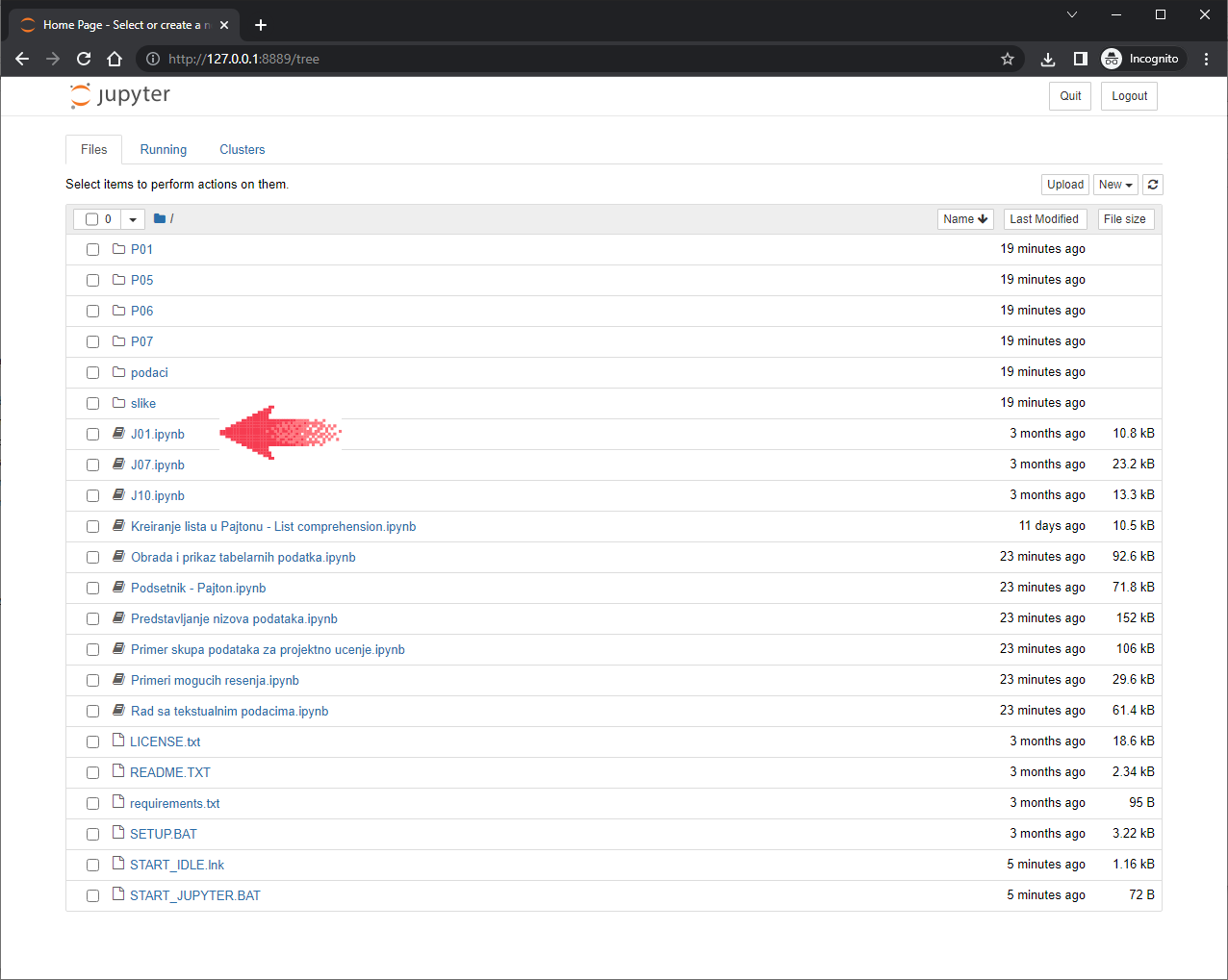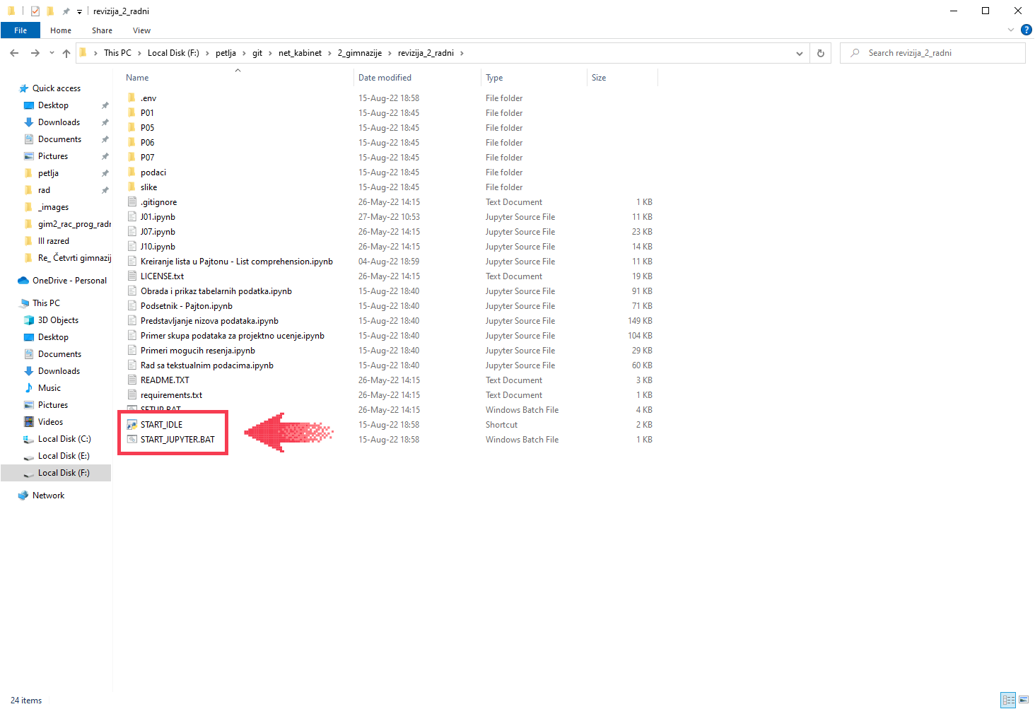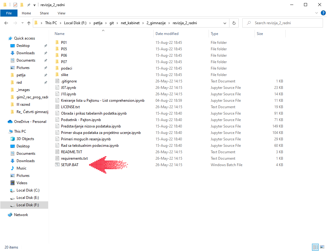 За покретање Џупитера треба да покренеш команду START_JUPYTER.BAT тако што ћеш два пута кликнути на њено име.
