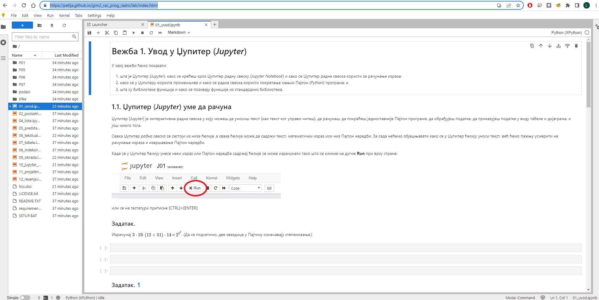 а други је да фајлове за вежбу отвараш у Џупитерлајт окружењу користећи само веб-браузер.