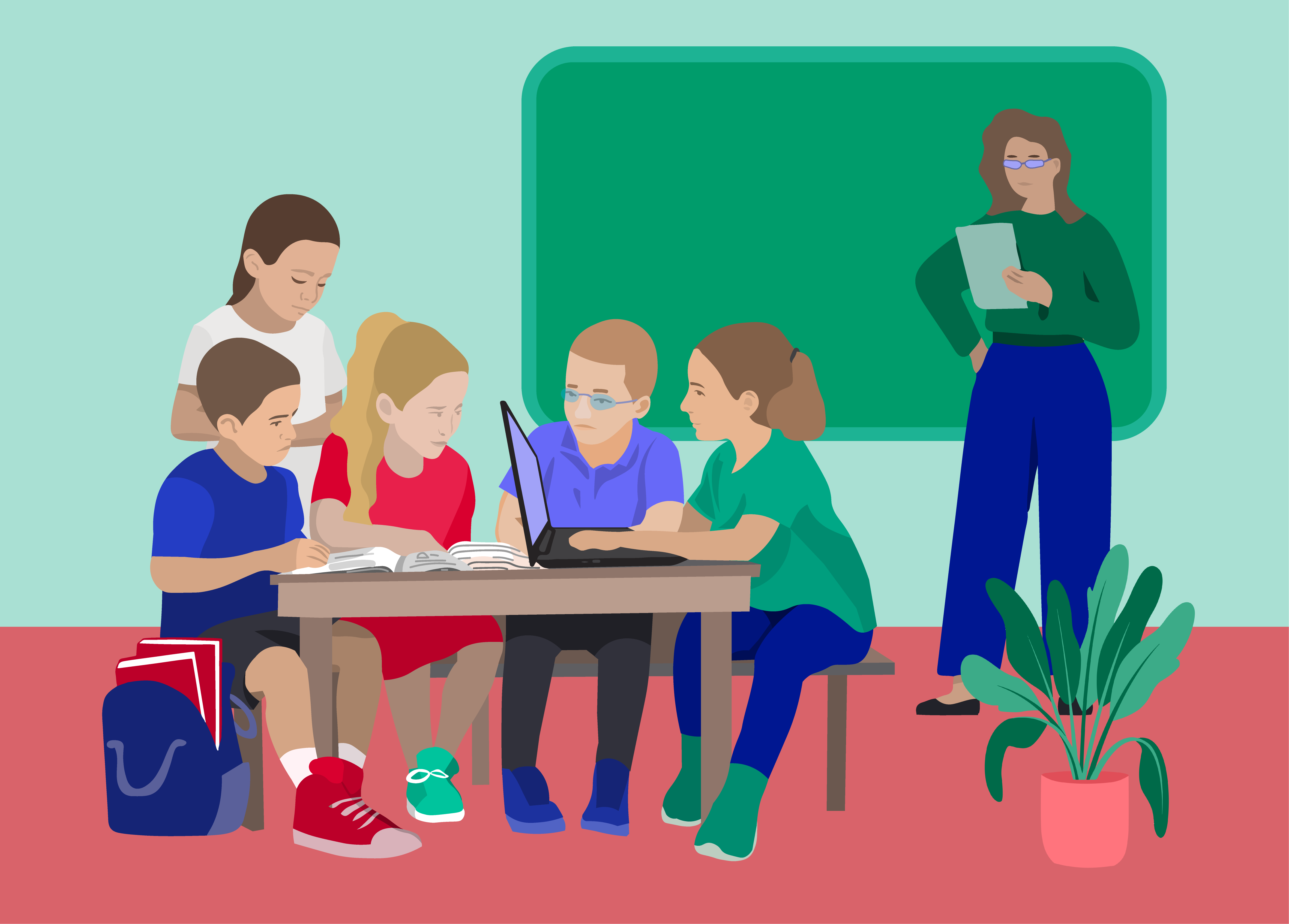 На који начин девојчица у зеленој мајици може да провери да ли је добро одговорила на питања? Зашто то дечак са црвеним патикама не може да уради? Опиши.