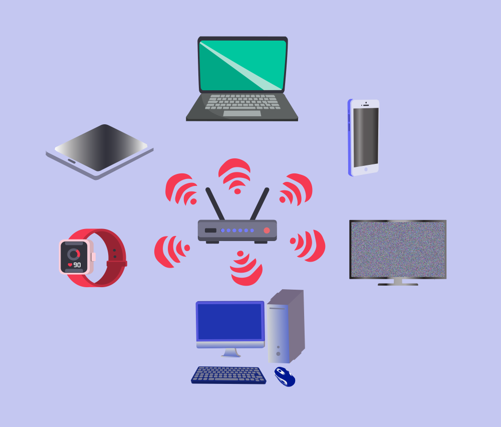 На доњој слици је дат приказ како се повезују дигитални уређаји на интернету. Један важан уређај који повезује све дигиталне уређаје назива се рутер. Опиши остале дигиталне уређаје са слике.