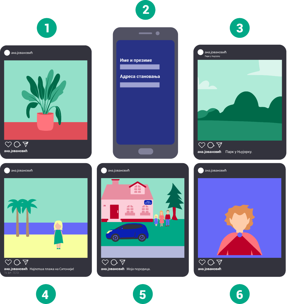 Коју од слика можеш да делиш јавно, а коју приватно? У радној свесци на страници 70 у табелу упиши број слике у одговарајуће колоне.