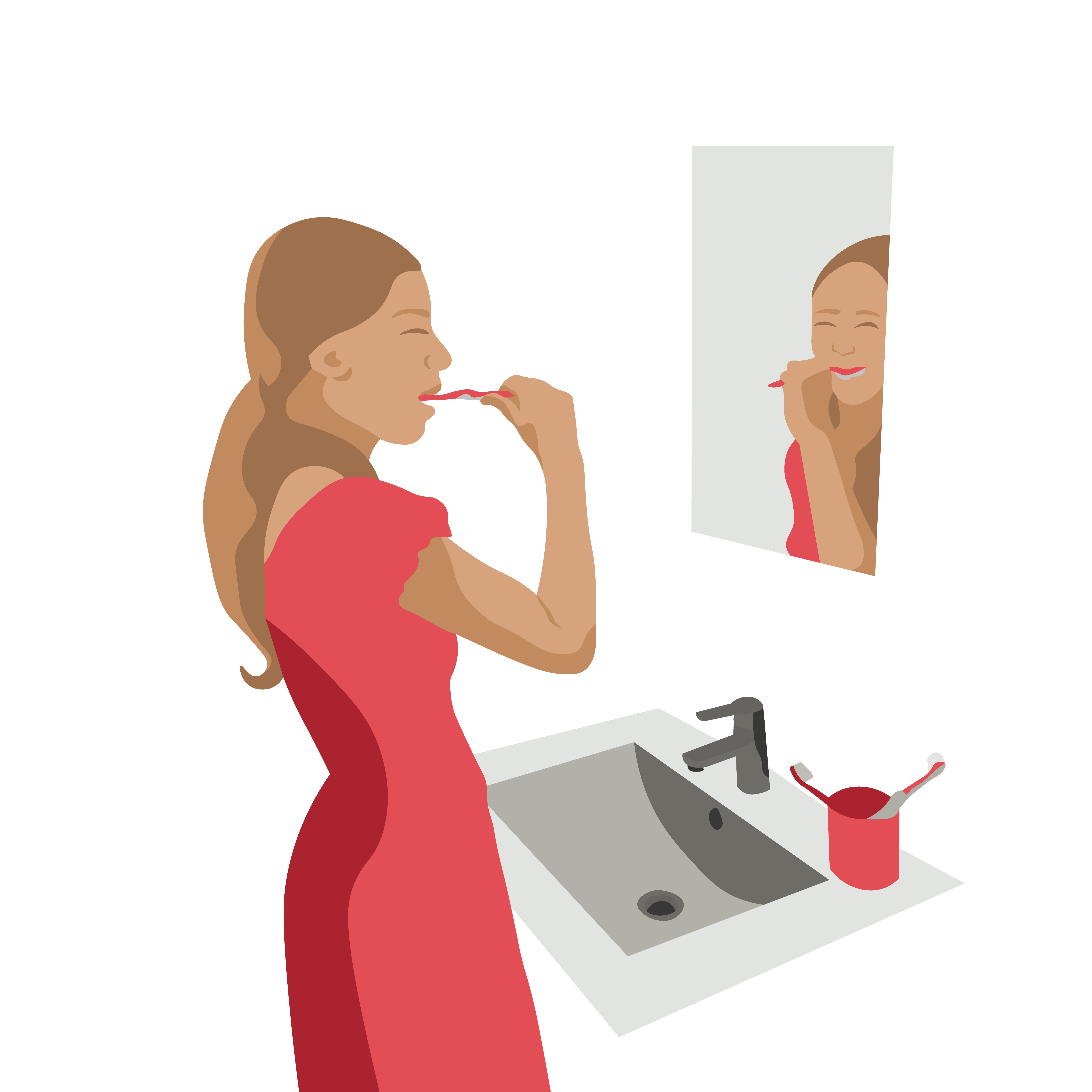 - Узми четкицу, опери предње зубе, стави пасту на четкицу, опери зубе позади, испљуни пасту, пусти воду, испери четкицу, узми пешкир, затвори воду, врати четкицу на месту, обриши уста пешкиром да их осушиш, врати пешкир, испери уста
