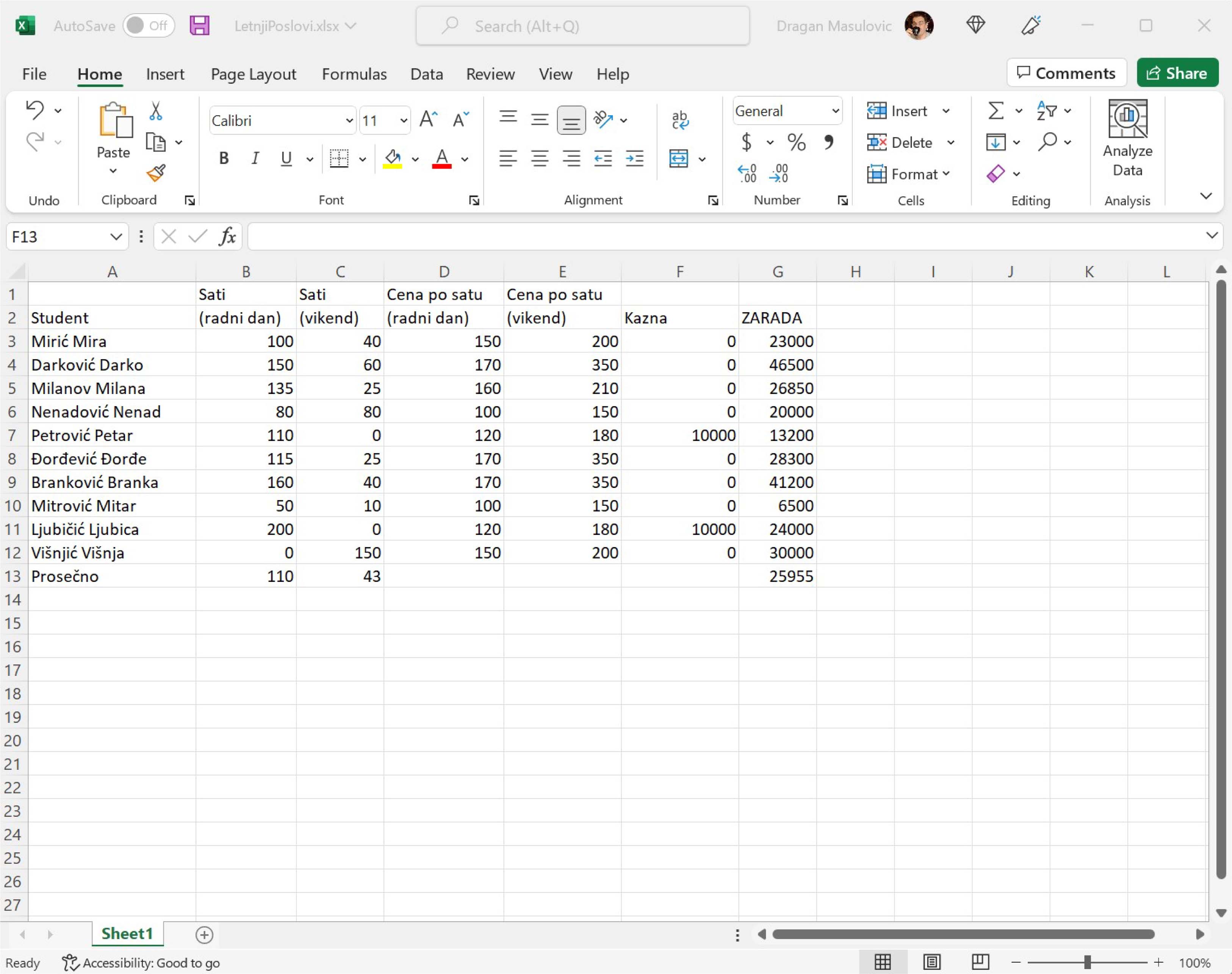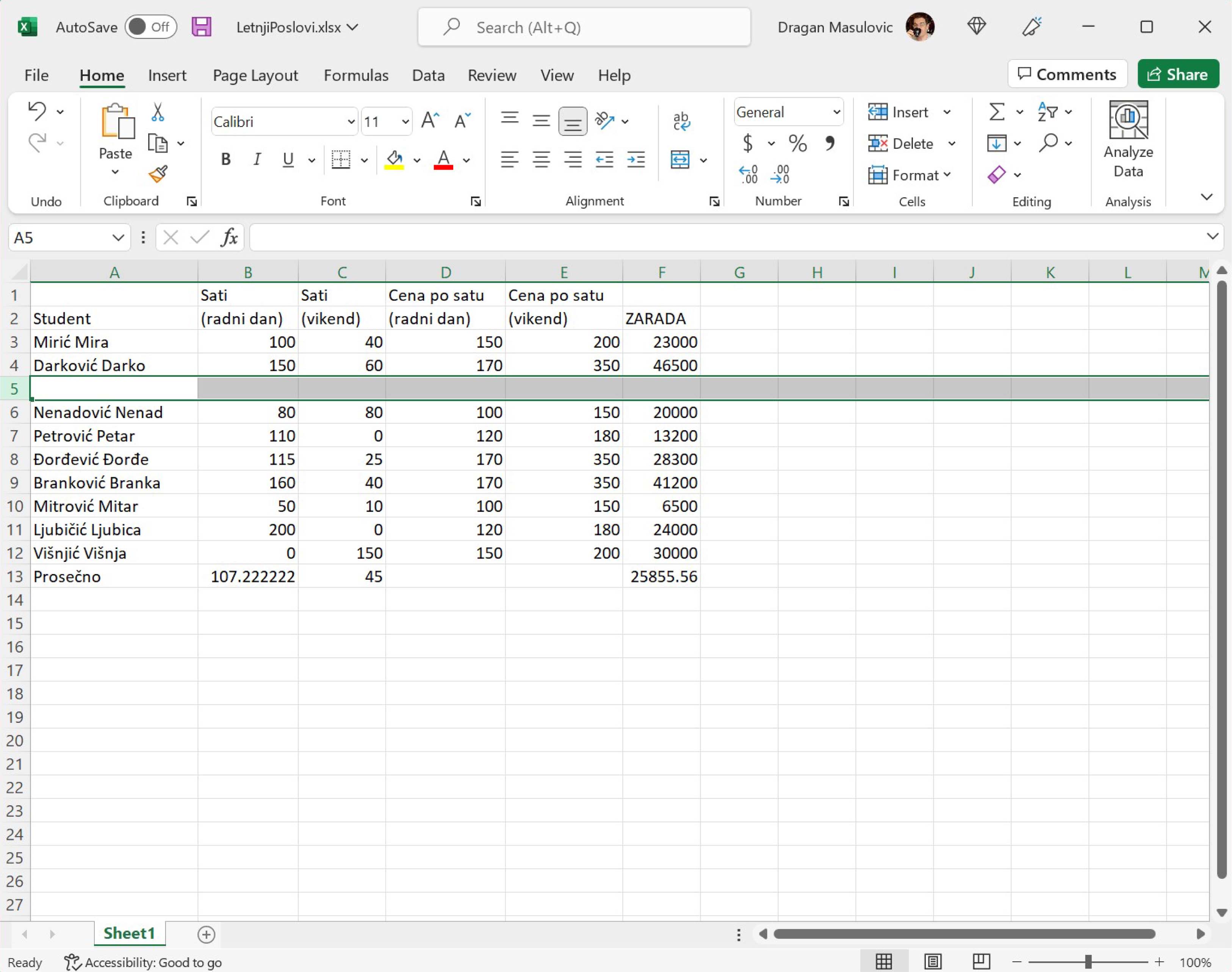 и уочи да је Ексел аутоматски прерачунао све податке у табели!