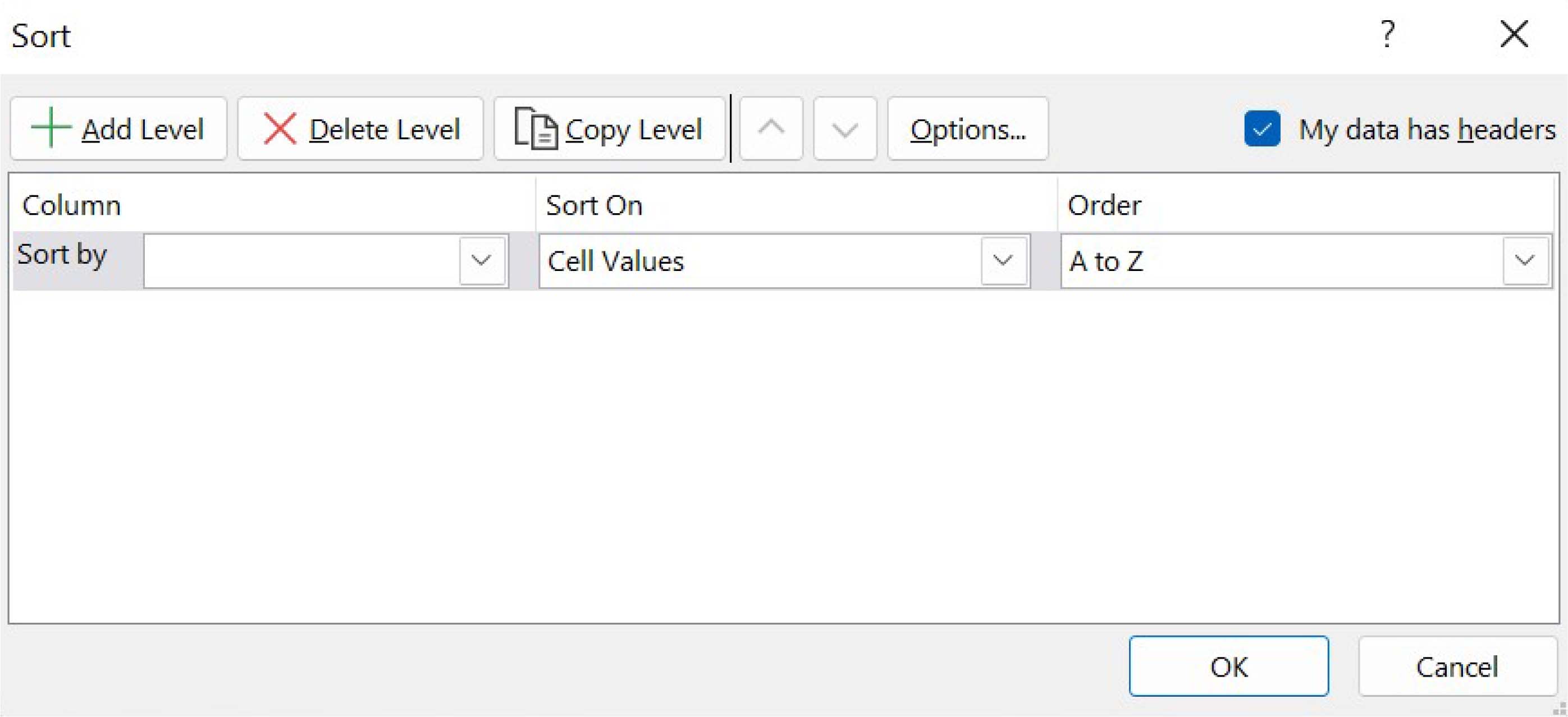 Појавиће се прозор у коме можемо да одаберемо колону по којој ће бити сортирана табела: