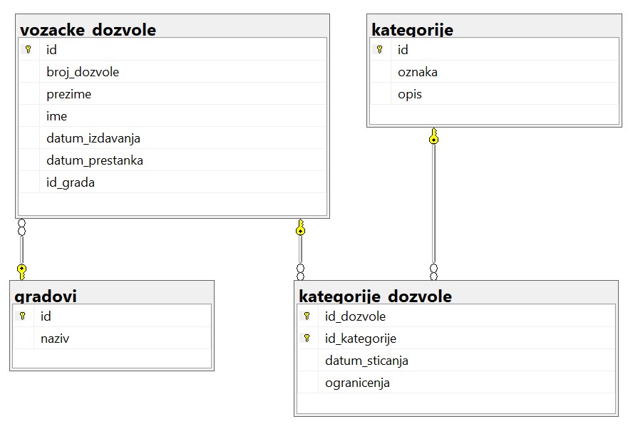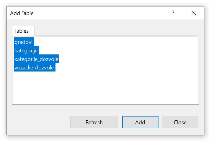 Према потреби зумирати или одаљити слику и испремештати табеле. Добијени дијаграм је приказан на следећој слици.