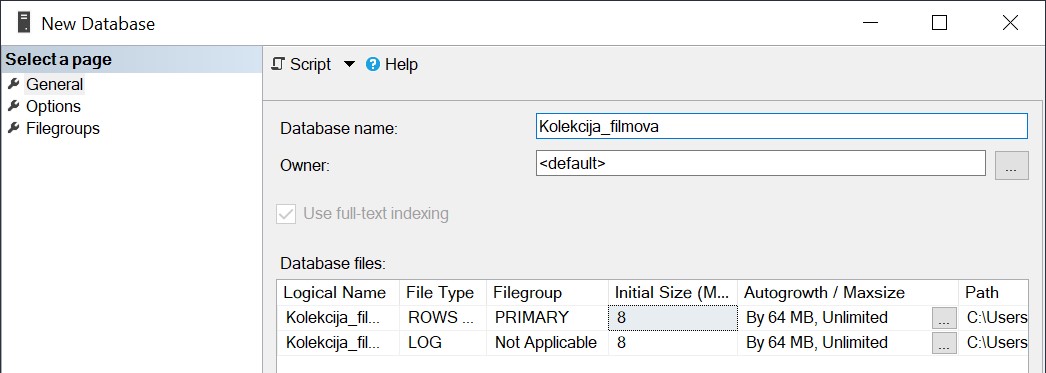 База података за филмове - креирање базе¶