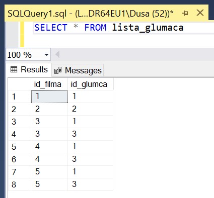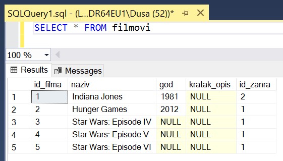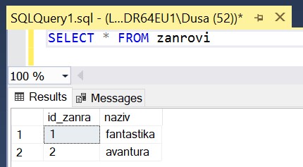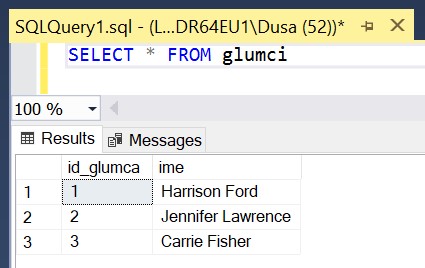 Покретањем једноставних упита можемо да видимо како изгледају попуњене табеле.
