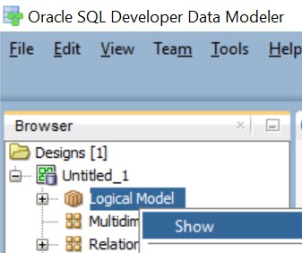 Након покретања алата, кликнути десни тастер миша над ставком Logical Model и изабрати Show.