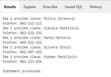 Уколико желимо да прикажемо ове податке за све чланове, морамо да користимо курсор. Да бисмо радили са курсором, неопходни су следећи кораци: