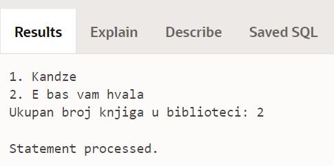 DBMS_OUTPUT.PUT_LINE('Ukupan broj knjiga u biblioteci: '||v_broj);