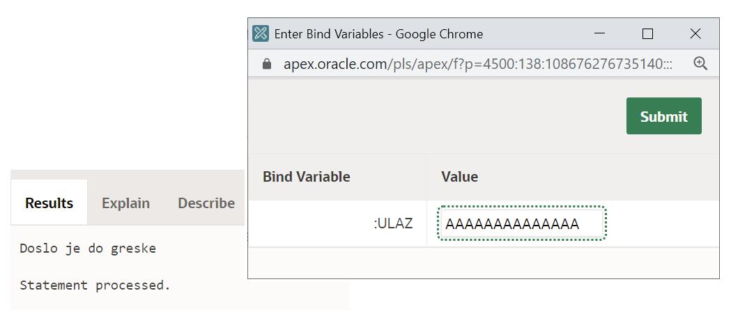 Следе примери једноставних програма написаних у језику PL/SQL у онлајн окружењу Oracle APEX.