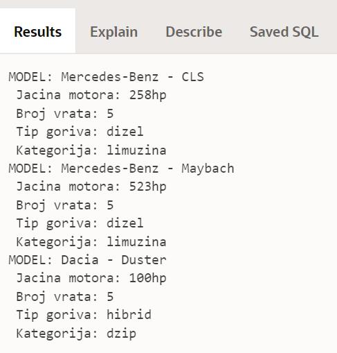 CURSOR kursor_modeli IS SELECT oznaka, jacina_motora, broj_vrata, tip_goriva,